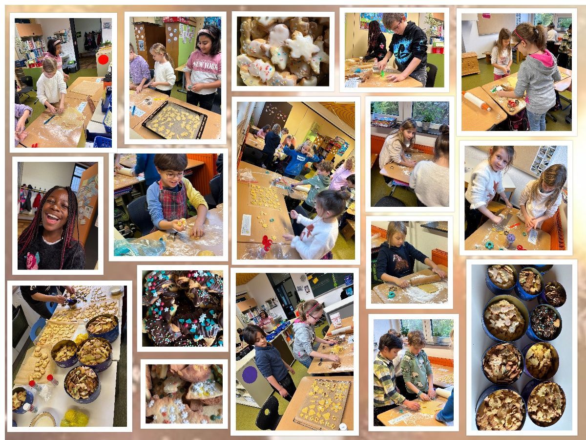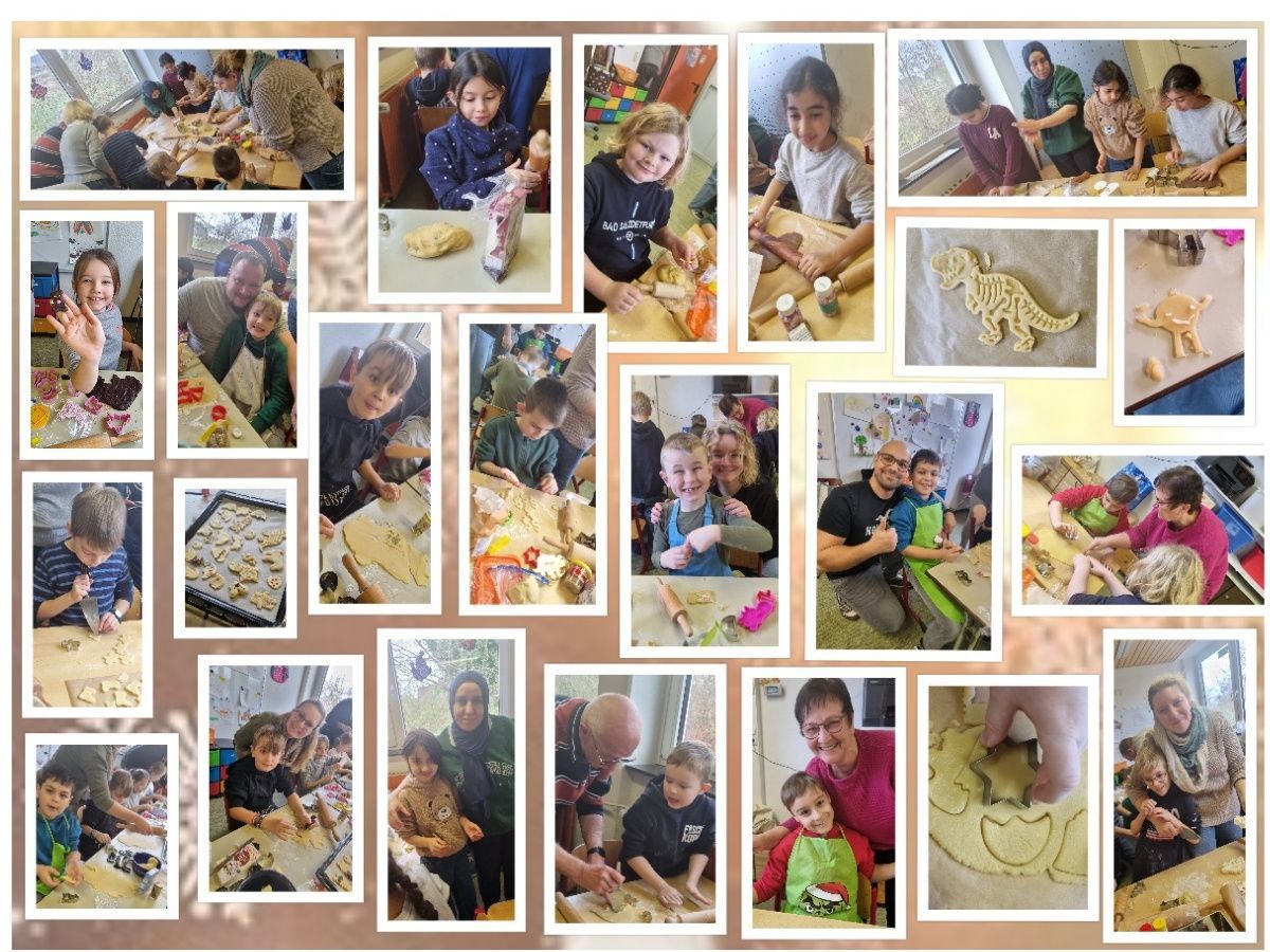 Jeden Dezember ist es wieder so weit. Unsere Weihnachtsbäckerei öffnet ihre Tore. Da werden die Backschürzen rausgeholt, die Nudelhölzer und Ausstechförmchen bereit gelegt, unzählige bunte Streusel besorgt und natürlich Schalen voll mit leckerem Teig vorbereitet. Und dann heißt es einen ganzen Vormittag lang: Ran an den Teig! Die dabei entstandenen Plätzchen werden dann genüsslich beim Vorlesen der täglichen Adventsgeschichte genascht. Auch dieses Jahr dachten unsere Elternhelfer wieder, wir hätten viel zu viel gebacken. Aber da kennen sie unsere Leckermäulchen schlecht! Bis auf den letzten Krümel wurde alles aufgefuttert. Lecker!