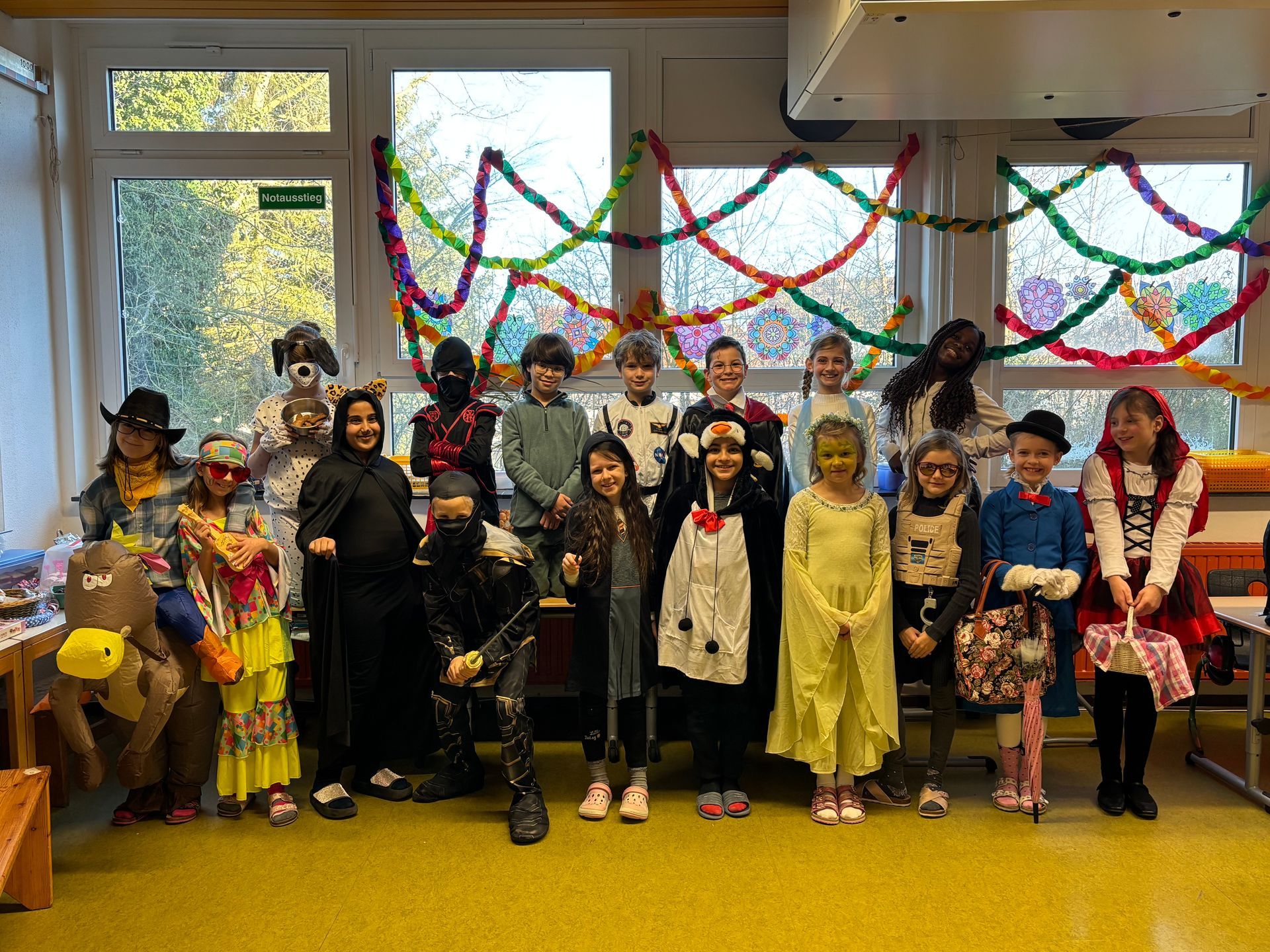 Heute ist es bunt, verrückt und alle sind in Partystimmung, denn es ist Rosenmontag! Da wird besonders viel gelacht, getanzt und gefeiert! Natürlich haben wir uns auch alle verkleidet. Schaut mal, welch tolle Kostüme wir ausgesucht haben.
